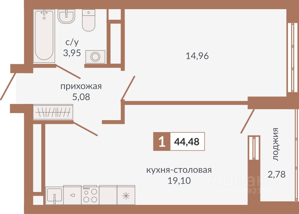 Продается Однокомнатная квартира в новом жилом квартале "Видный" в районе ВИЗ. Квартира находится на 22 этаже, общей площадью 44.48. Строительство разделено на две очереди.