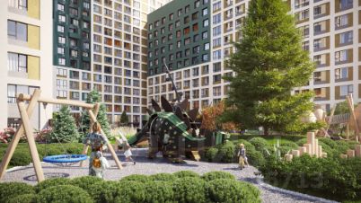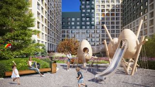 Двор без машин. Игровые площадки для детей разных возрастов, места отдыха и занятий спортом для взрослых не соседствуют с парковкой.