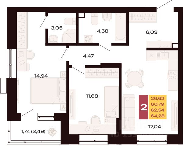 Продается Двухкомнатная квартира площадью 64.28 кв.м. на 2 этаже. Квартира в ЖК "Первый Южный" располагается в центральной части перспективного микрорайона, в границах улиц Шаумяна, Амундсена, Волгоградской и Советских Женщин с отличной транспортной доступностью, близостью к центру и развитой социальной инфраструктурой.