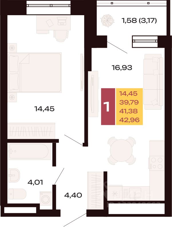 42,96 м²