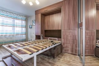-бонусом покупателю остается следующее имущество: Встроенная кровать-трансформер, Пуфики с подушками, Шкаф-купе, Кухонный гарнитур, Шкаф с зеркалом в ванной комнате, Раковина, ванна и унитаз в ванной комнате, Комод в гардеробе, Люстра в комнате и на кухне, Гардина в комнате ,Рулонные шторы на кухне и в комнате ,Жалюзи на балконе;