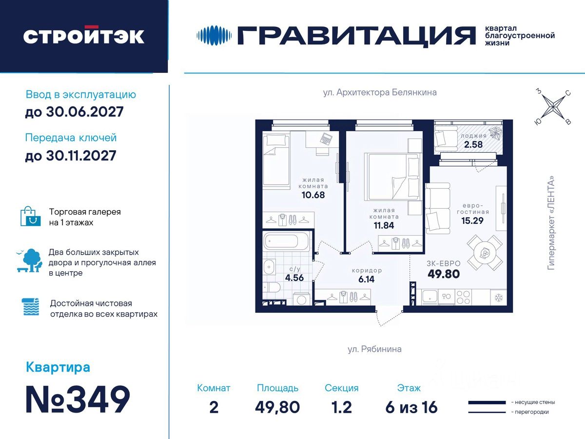 Удачные решения Новый квартал благоустроенной жизни "Гравитация" мы разместили в периметре улиц Рябинина и Академика Ландау. У квартала 5 этапов строительства, а всю работу мы завершим к 2030 году. Авторы проекта гармонично совместили в оформлении природные элементы и современный дизайн. Волнообразные очертания на стенах вдохновлены силой ветра и движением воды. Скруглённые углы подчеркивают элегантный силуэт, а контрастная палитра акцентов и контурная подсветка верхних этажей создают выразительный архитектурный образ. Первый этап строительства: — Секция 1.1 — 1 подъезд 26 этажей — Секция 1.2 — 2 подъезда 16 этажей — Секция 1.3 — 1 подъезд 12 этажей Здесь всё и сразу Гравитация — уютный и обособленный, и в то же время открытый и просторный квартал. Всё рядом: супермаркеты и парки, кино и рестораны, школы и сады. В нескольких шагах набережная реки Патрушихи. В квартале построят муниципальный детский сад на 200 мест, а на 5 этапе строительства мы возведём 6-уровневый надземный паркинг на 250 машин. На первых этажах домов для вас будет работать торговая галерея с магазинами, кафе и привычными бытовыми сервисами. В 1 этапе строительства 631 квартира. Своя вселенная Развитый Академический район удобен и молодым семьям, и школьникам, и состоявшимся профессионалам. Рядом большой Преображенский парк с озером и Юго-Западный лесопарк с Тропой здоровья. — 3 минуты до Гипер Ленты — 10 минут на машине до ТРЦ "Академический", 15 минут до ЕКАД, 25 до центра — 6 школ и 6 детских садов — Спортивные комплексы и клубы Wake up, Bright Fit и Юность Богатые возможности В квартале два просторных закрытых двора общей площадью 1,4 гектара. Один двор объединяет 1 и 2 этапы строительства, другой — 3, 4 и 5 этапы. Между дворами — камерная прогулочная аллея для неспешных вечеров или полуденного отдыха. Во дворе первого этапа — зелёные участки из хвойных деревьев, акцентных кустарников и травянистых многолетников, а также сеть дорожек, детская площадка с песочницей, аттракционами и геопластикой, настольный теннис и зона для зарядки. А для комфорта и безопасности — вечернее освещение, охрана и постоянное видеонаблюдение. Пространство с заботой В просторных светлых лобби Гравитации — интеллигентный дизайн, помещения для колясок, высокие витражи и комфортная мебель. Выходы сквозные, на улицу и во двор. Лифты грузоподъёмностью 1000 и 450 кг. Мы подготовили для вас 44 уникальных варианта продуманных планировок, в том числе с кухнями-гостиными, гардеробными и мастер-спальнями. Здесь нет бесполезных зон, зато есть где посидеть в семейном кругу и разместить всё для удобства и комфорта. Современные технологии Мы позаботились о достойной чистовой отделке, чтобы вы могли уделить время главному. — Виниловые обои на флизелиновой основе, окрашенные стены в санузлах и на лоджиях — Натяжные потолки везде, кроме лоджий, там — окрашенные — Прочный влагостойкий ламинат и керамическая плитка — Межкомнатные двери светлых тонов и сейф-дверь на входе — Эргономичное размещение розеток и выключателей