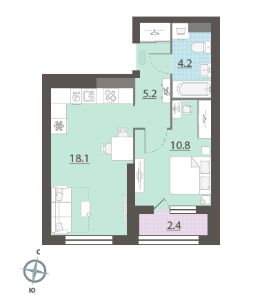Жилая площадь 10.8 м2, кухня 18.5 м2, чистовая отделка. Раздельных санузлов - нет, балконов - нет, лоджий - 1.