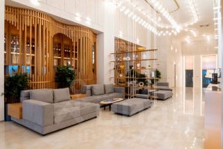 — единая парадная, соединяющая все секции с гостевой зоной и мягкой авторской мебелью;
