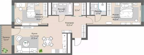 Продаётся 2-комнатная квартира в строящемся доме (Секции 1.4-1.6 (2 очередь)), срок сдачи: IV-кв. 2026, общей площадью 84.7 кв.м., на 11 этаже.