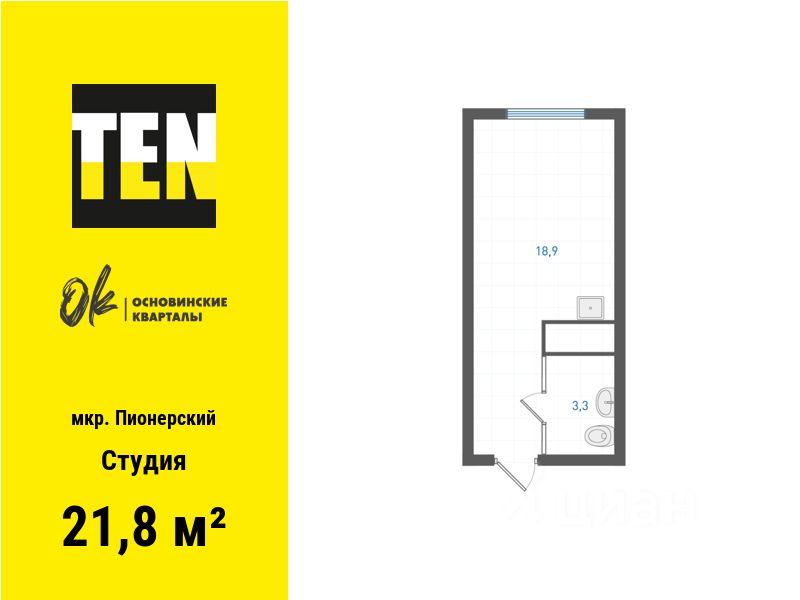 Общая площадь21,8 м²