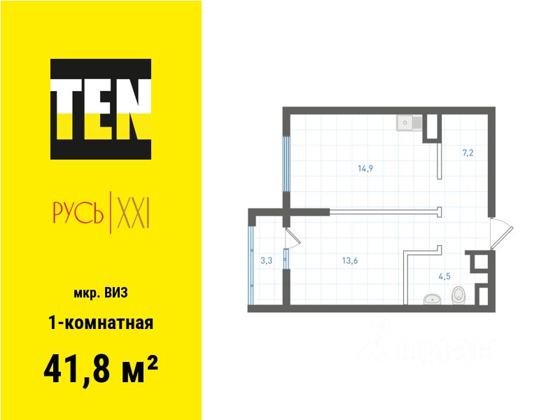 Квартира бизнес-класса в ЖК "Русь XXI" на ВИЗе от застройщика TEN девелопмент! Ключи во 2 квартале 2027 года. ЖК "Русь XXI" - это 10-секционный дом высотой от 7 до 18 этажей, из окон которого открываются вдохновляющие виды на Верх-Исетский пруд и огни мегаполиса. Двор-сад Двор закрыт от машин и посторонних, при этом на территории всегда много света и пространства благодаря разнице высот дома. Богатое озеленение, разнообразная геопластика, детские игровые и спортивная площадки, зоны для отдыха - все, чтобы каждому жителю было приятно проводить здесь время. Контроль доступа, видеонаблюдение и круглосуточная охрана обеспечат безопасность для себя и близких. Эстетика и комфорт Входные группы прозрачные и сквозные, расположены на уровне тротуара, чтобы было удобно завозить коляску или велосипед. Холлы оформлены в едином стиле - светлые пространства с отделкой под дерево и камень. Для удобства каждого жителя здесь есть мягкие и коворкинг-зоны, колясочная и лапомойка. Для автолюбителей - подземный паркинг. Настоящая свобода Большая площадь и высота потолка 3 м сделает квартиру визуально еще просторнее. При таких размерах гораздо проще подобрать оптимальный вариант дизайна интерьера для любой семьи. Отделка под чистовую. В санузле — монолитный потолок, на полу — гидроизоляция и стяжка, стены оштукатурены. В одном санузле установлены унитаз и раковина. В остальных помещениях потолок — монолит, на полу — стяжка, стены оштукатурены. Выгодные условия оплаты: - акционные предложения - ипотека от ведущих банков, семейная ипотека - рассрочка от застройщика - трейд-ин Звоните или оставляйте заявку, чтобы узнать больше и забронировать квартиру!