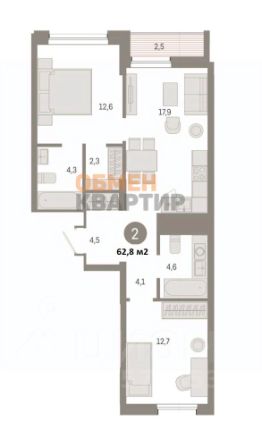 Предлагаем вашему вниманию квартиру площадью 62,8 м на четвёртом этаже семиэтажного дома.