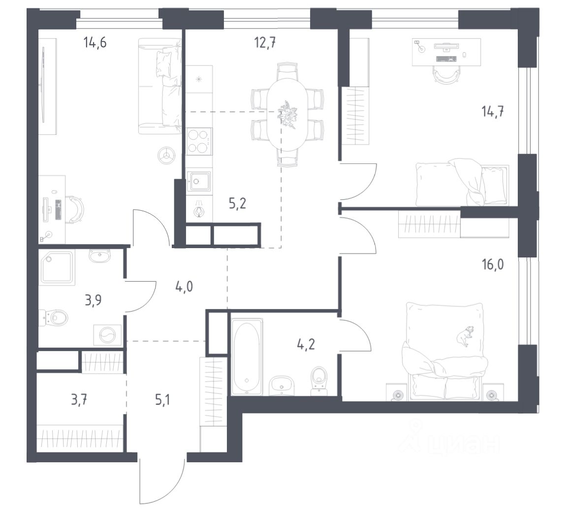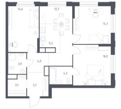 Строим кварталы для жизни с заботой о будущем. Предлагается 3-комнатная квартира комфорт-класса площадью 84.1 кв.м в корпусе 2КВ на 13-м этаже, в жилом комплексе "Квартал Ауруум".