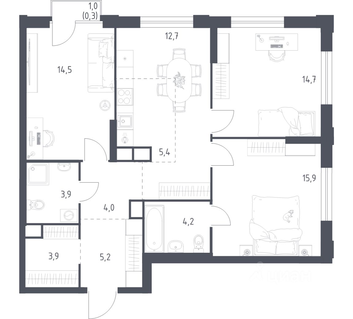Строим кварталы для жизни с заботой о будущем. Предлагается 3-комнатная квартира комфорт-класса площадью 84.7 кв.м в корпусе 2КВ на 6-м этаже, в жилом комплексе "Квартал Ауруум".