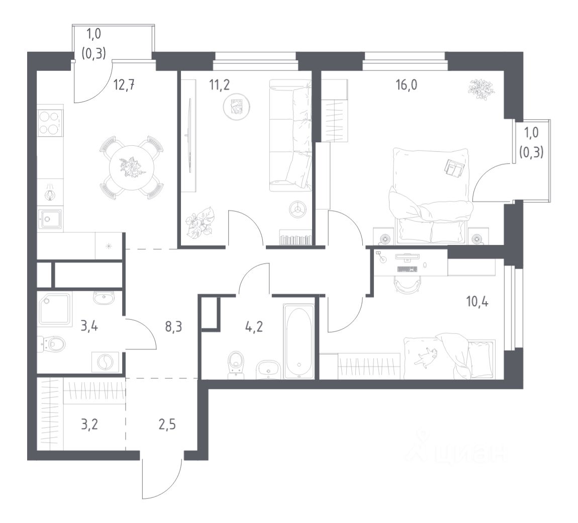 Для авто — подземный паркинг. Все квартиры с предчистовой отделкой.