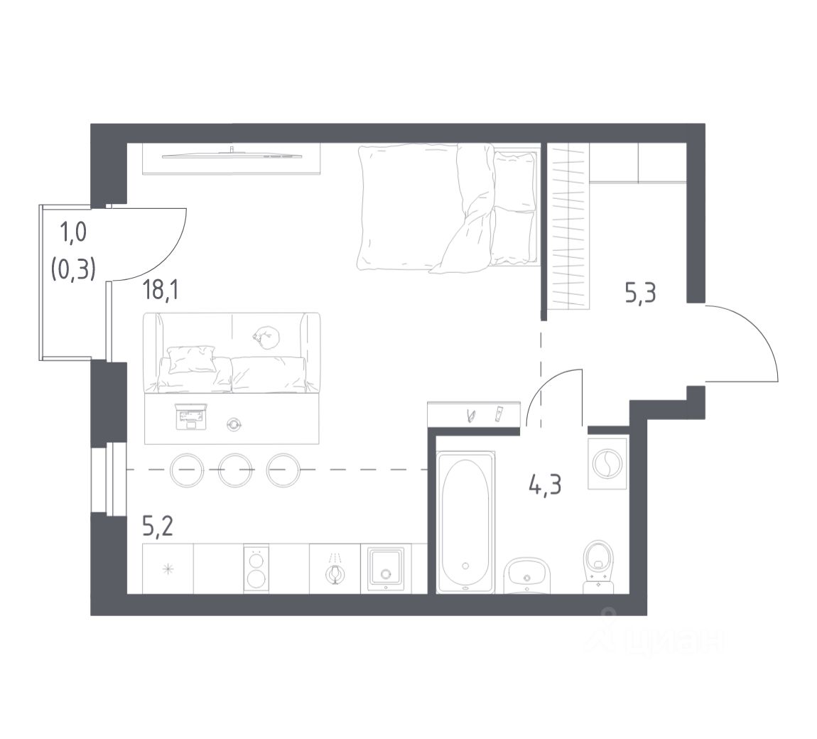 Строим кварталы для жизни с заботой о будущем. Предлагается студия комфорт-класса площадью 33.2 кв.м в корпусе 1КВ на 20-м этаже, в жилом комплексе "Квартал Ауруум".