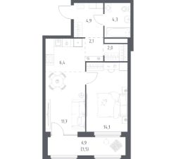 Строим кварталы для жизни с заботой о будущем. Предлагается 1-комнатная квартира комфорт-класса площадью 49.0 кв.м в корпусе 1КВ на 30-м этаже, в жилом комплексе "Квартал Ауруум".