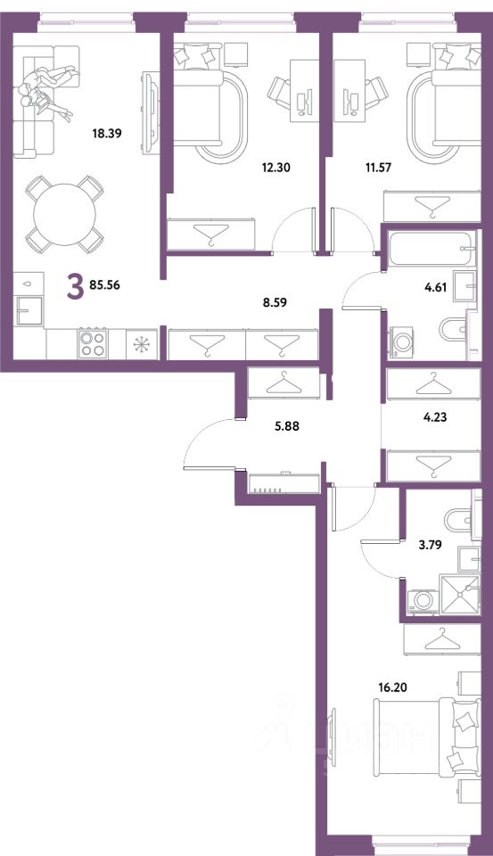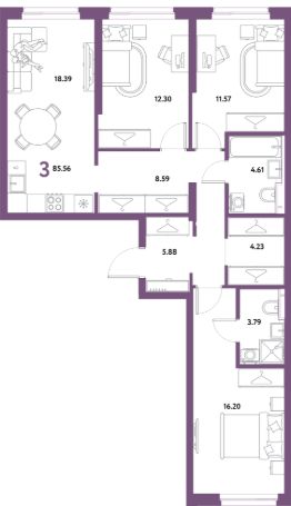 Продаётся 3-комнатная квартира в строящемся доме (Дом 3), срок сдачи: IV-кв. 2028, общей площадью 85.56 кв.м., на 7 этаже. Новый жилой комплекс "Уральский сад" от застройщика "ГК Страна Девелопмент" расположен по адресу: г. Екатеринбург, посёлок Совхозный, Комбинатская улица.