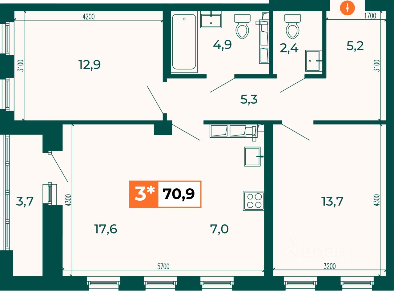 Продаётся студия в строящемся доме (Дом 1.4), срок сдачи: IV-кв. 2028, общей площадью 70.9 кв.м., на 23 этаже. Квартал "Отрадный" возводится в новой части ВИЗа. В 15 минутах ходьбы находятся 4 детских сада, 4 школы и 5 центров развития для дошколят. За 5 минут можно дойти до ТРЦ "Радуга-Парк" с кинотеатром и живописным парком аттракционов.