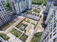 Во дворе для взрослых и детей - безопасные игровые площадки, футбольное и стритбольное поля, пикник-зона и шезлонги. Ухоженные дорожки среди деревьев и цветущих кустарников, скамейки и сад камней для прогулок.