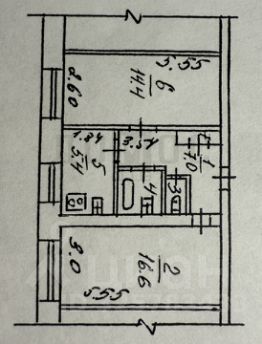 Удачная планировка с двумя большим изолированными комнатами, которые отделены друг от друга просторным коридором и кухней. В одной из комнат есть место для обустройства гардероба.