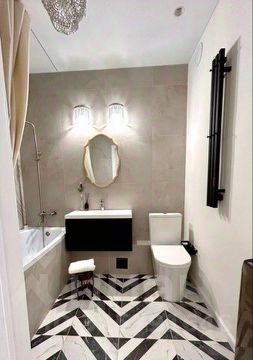 Кухня и санузел оборудованы бытовой техникой: стиральная и посудомоечная машины, индукционная варочная панель.
