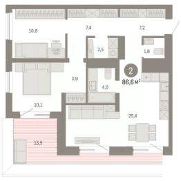 Квартира с кухней-гостиной и двумя спальнями в Северном квартале. Особенности планировки: предчистовая отделка, терраса на крыше.
