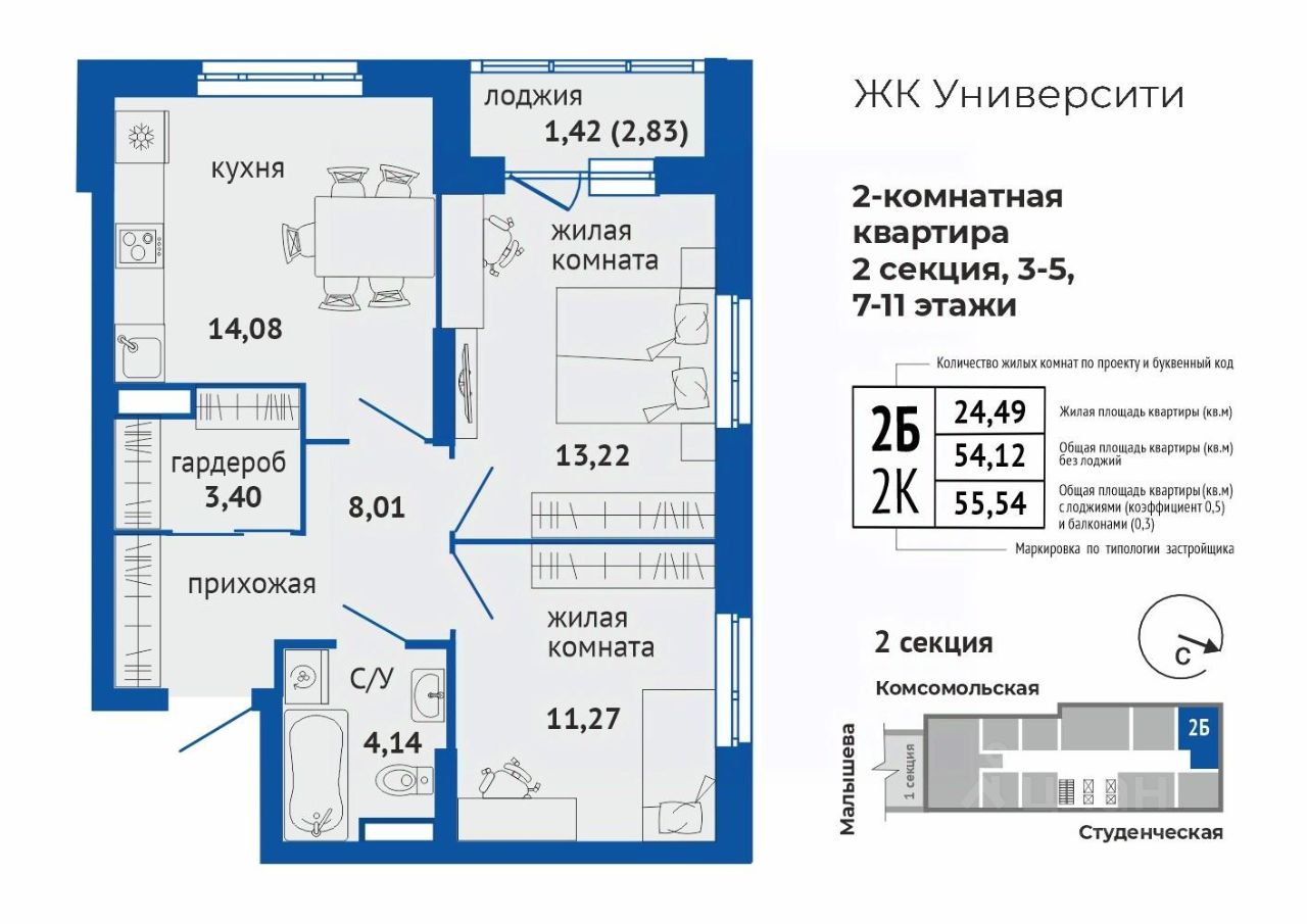 Общая площадь55,54 м²