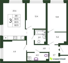 Общая площадь82,5 м²