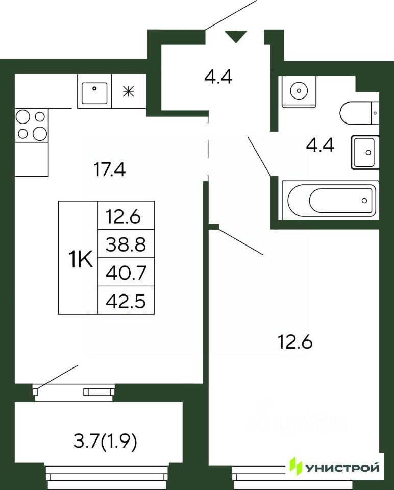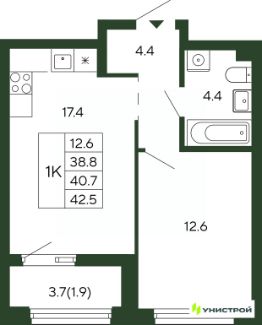 Общая площадь40,7 м²