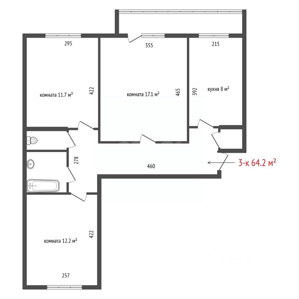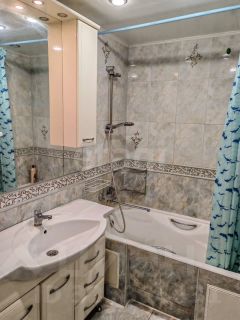 Продается трехкомнатная квартира площадью 64 кв.м. на 8 этаже. В квартире рациональная планировка с ориентацией окон на разные стороны, что обеспечивает прекрасную естественную освещенность всех комнат в течение дня и эффективное проветривание. Квартира готова к заселению: выполнен косметический ремонт с использованием практичных материалов — плитка в ванной комнате, на кухне и в коридоре, линолеум в комнатах, установлены натяжные потолки. В собственность покупателя перейдут кухонный гарнитур, водонагреватель и большой шкаф-купе в прихожей. Лоджия застеклена.