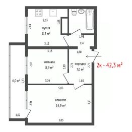 Продаем 2-х комнатную квартиру общей площадью 42,3 кв.м на 5 этаже 9 этажного дома. В квартире просторная кухня и раздельные 2 спальные комнаты, совмещенный санузел, вместительная лоджия .