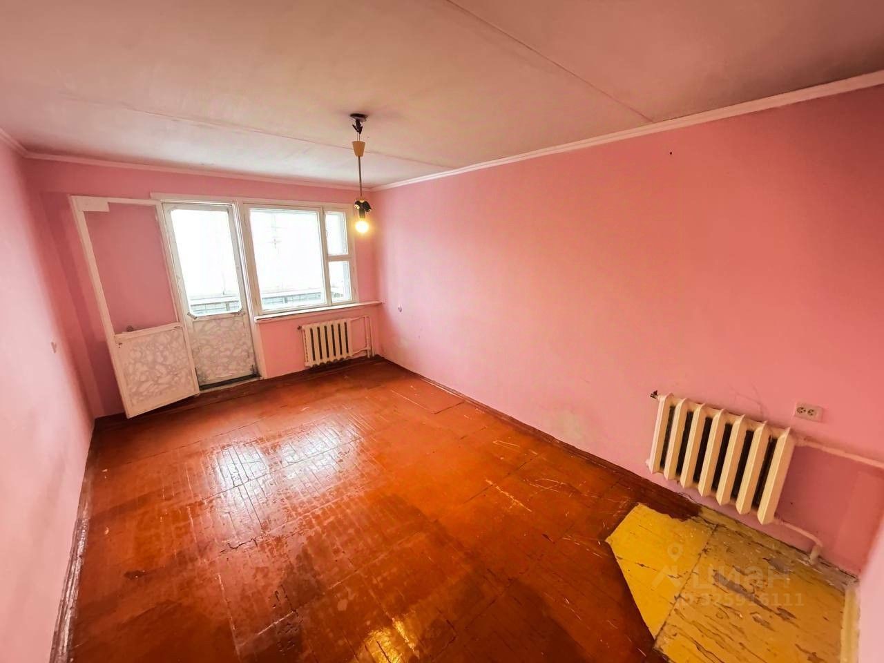 Квартира требует косметического ремонта, установлены два пластиковых окна и входная сейф дверь, балкон застеклен метало пластиком.
