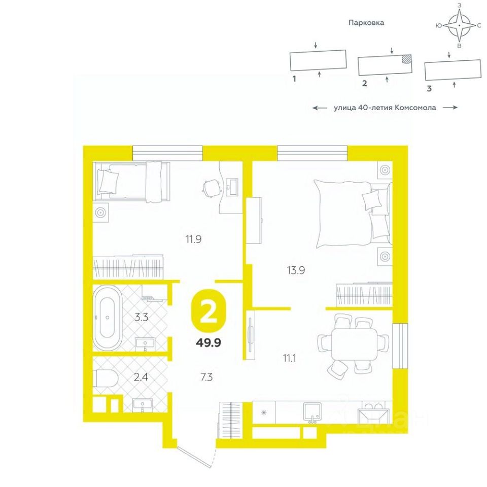 Квартира располагается в ЖК "Комсомольский" — жилом комплексе комфорт-класса. Здесь вы будете наслаждаться беззаботной жизнью, ведь ваш дом — воплощение практичности, безопасности и надежности. Для удобства предусмотрены колясочные на первых этажах домов, где можно оставить велосипеды и коляски в тепле. За безопасность отвечают система электронных ключей и видеонаблюдение. Еще здесь собственная котельная, поэтому в доме всегда будут горячая вода и оплата счетов только за фактически потребленное тепло.