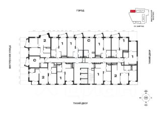 - Закрытая территория с собственным выходом в лес. Стилобат с объектами социальной и бытовой инфраструктуры, а также несколько детских площадок.