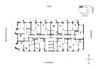 - Закрытая территория с собственным выходом в лес. Стилобат с объектами социальной и бытовой инфраструктуры, а также несколько детских площадок.