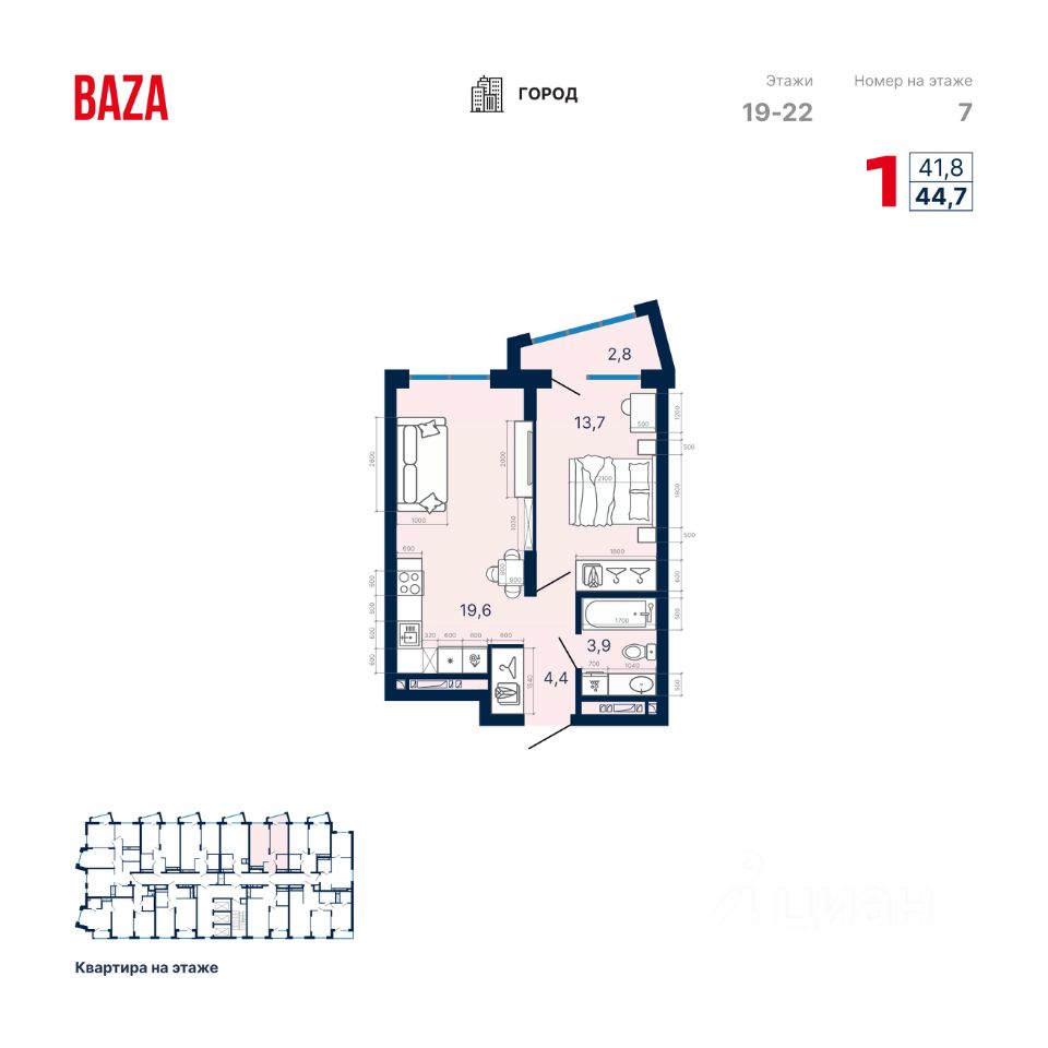 Продаётся квартира в Квартал-парк "Каменные палатки" от застройщика BAZA Development (покупка квартиры защищена банком). 1-комнатная квартира, 44,7 м², 244, 4 очередь, 13 секция. Стоимость указана с учетом отделки white box.