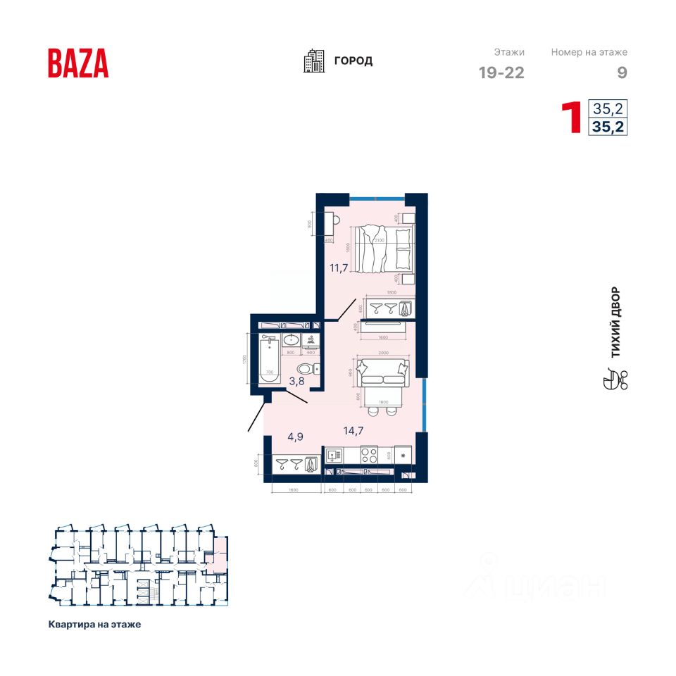 Продаётся квартира в Квартал-парк "Каменные палатки" от застройщика BAZA Development (покупка квартиры защищена банком). 1-комнатная квартира, 35,29 м², 246, 4 очередь, 13 секция. Стоимость указана с учетом отделки white box.