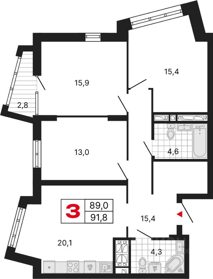 Продаётся квартира в Квартал-парк "Каменные палатки" от застройщика BAZA Development (покупка квартиры защищена банком). 1-комнатная квартира, 91,89 м², 273, 4 очередь, 13 секция. Стоимость указана с учетом отделки white box.