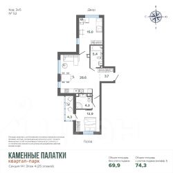 Продается квартира в современном Квартал-парке "Каменные Палатки" новый жилой комплекс комфорт-класса расположен на границе микрорайонов ЖБИ и Втузгородок, в 15 минутах от центра города рядом с природным парком Каменные палатки и озером Шарташ. В продаже 4 очередь (секция 14). Преимущества квартир: • Высокие потолки (2,7 м); • Качественная чистовая отделка: входные двери, ламинат, обои под покраску, установлена сантехника; • Горизонтальная разводка систем отопления свободные стены; • Счетчики на э/э, воду и тепло ежемесячная экономия на коммунальных платежах; • Сделаны входы для слаботочных сетей (интернет, телефон, цифровое телевидение). Преимущества дома: • Просторная закрытая придомовая территория; • Прямо из комплекса выход в природный парк Каменные Палатки; • Просторная наземная парковка и подземный паркинг; • Муниципальный детский сад в 3й очереди на 200 мест; • В жилом комплексе расположены ЖизньМарт, Монетка, Пятёрочка, пункты выдачи ЯндексМаркет, Ozon и Wildberries. Детский оздоровительный центр и стоматологическая клиника. • В нескольких минутах от дома расположены: гимназия 45, пять детских садов, гипермаркет "Магнит Семейный".