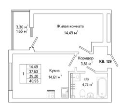 Продаётся 1-комнатная квартира в сданном доме (Яскина, 14/3 (Дом 3 3 этап)), срок сдачи: III-кв. 2025, общей площадью 39.28 кв.м., на 14 этаже. Система "умный" дом