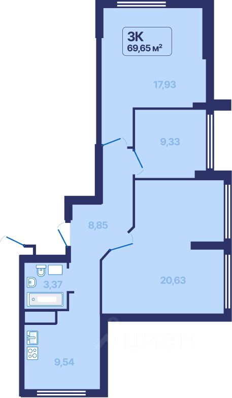 Общая площадь69,65 м²