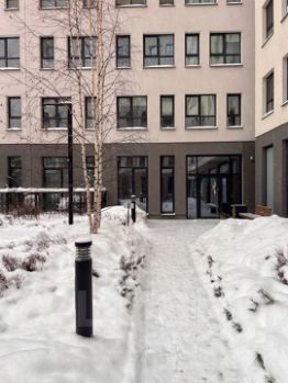 Благоустройство закрытого внутреннего двора осуществлено в единой концепции застройщика Брусника- обилие зелёных насаждений, цветников и детских развлекательных уголков, отвечая требованиям полной безопасности.
