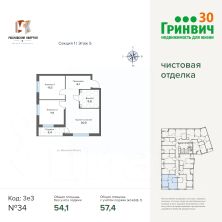 Продаётся 2-комнатная квартира в строящемся доме (Дом 12), срок сдачи: IV-кв. 2026, общей площадью 57.44 кв.м., на 5 этаже.