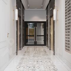 Богатое и утончённое оформление холлов, удобная мягкая мебель, информативная навигация, стойка ресепшн и радушный консьерж. И это — не всё.