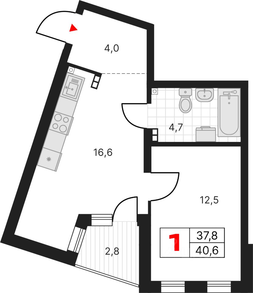 Продаётся квартира в Клубный дом "Московский Квартал", 12 дом. 1-комнатная квартира, 40,62 м², 19. Стоимость указана с учетом чистовой отделки.