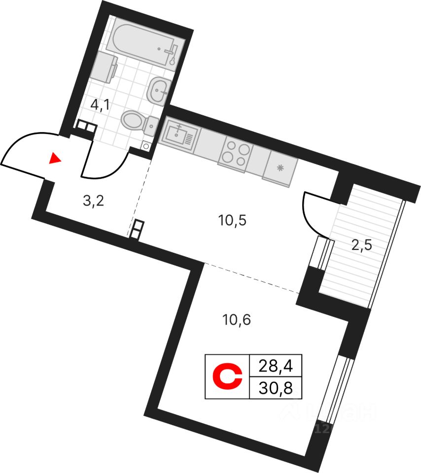 Продаётся квартира в Клубный дом "Московский Квартал", 12 дом. Квартира студия, 30,75 м², 98. Стоимость указана с учетом чистовой отделки.