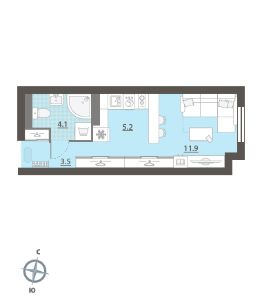 Жилая площадь 11.6 м2, кухня 5.2 м2, чистовая отделка. Раздельных санузлов - нет, балконов - нет, лоджий - нет.
