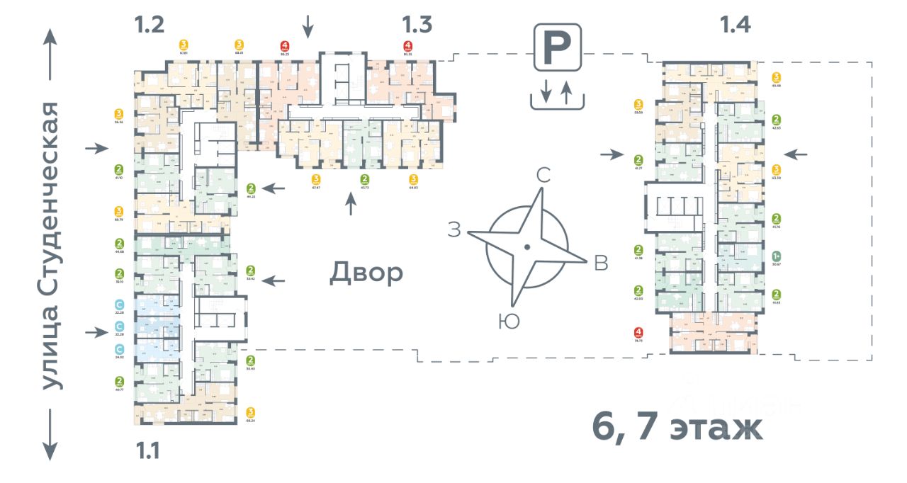 Предусмотрен подземный паркинг и кладовые. Срок сдачи 3 квартал 2026 г.