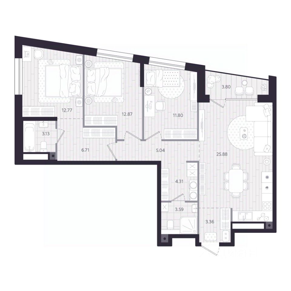 Продаётся 3-комнатная квартира в строящемся доме (Дом 1.1), срок сдачи: II-кв. 2028, общей площадью 91.67 кв.м., на 7 этаже. Новый жилой комплекс "Тетро" от застройщика "Люди" расположен по адресу: г. Екатеринбург, улица Героев России.