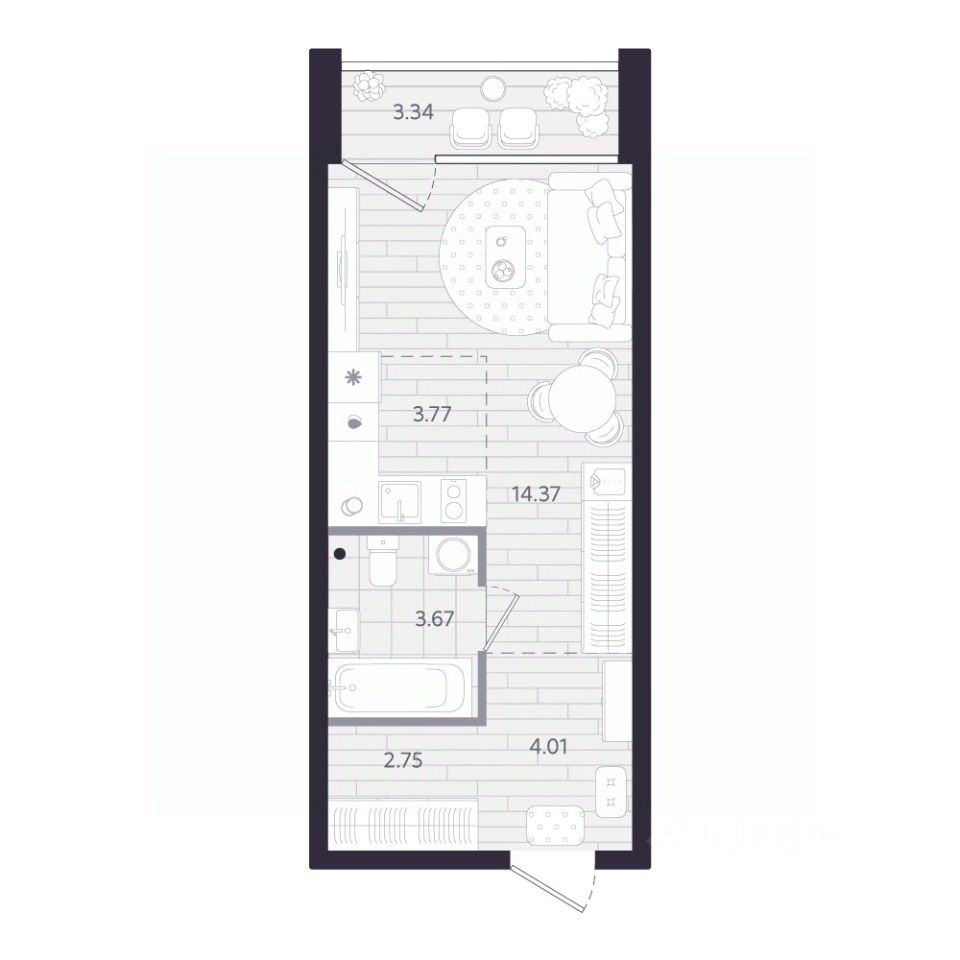 Продаётся студия в строящемся доме (Дом 1.1), срок сдачи: II-кв. 2028, общей площадью 30.24 кв.м., на 12 этаже. Новый жилой комплекс "Тетро" от застройщика "Люди" расположен по адресу: г. Екатеринбург, улица Героев России.