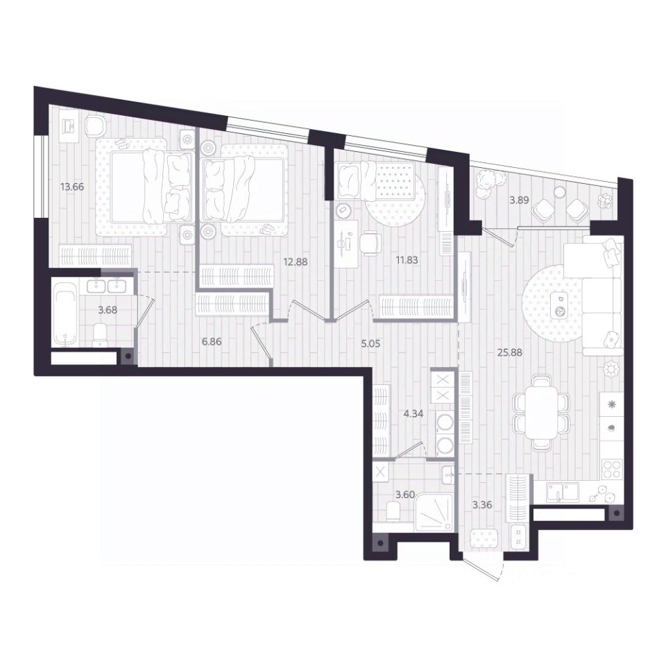 Продаётся 3-комнатная квартира в строящемся доме (Дом 1.1), срок сдачи: II-кв. 2028, общей площадью 93.09 кв.м., на 12 этаже. Новый жилой комплекс "Тетро" от застройщика "Люди" расположен по адресу: г. Екатеринбург, улица Героев России.