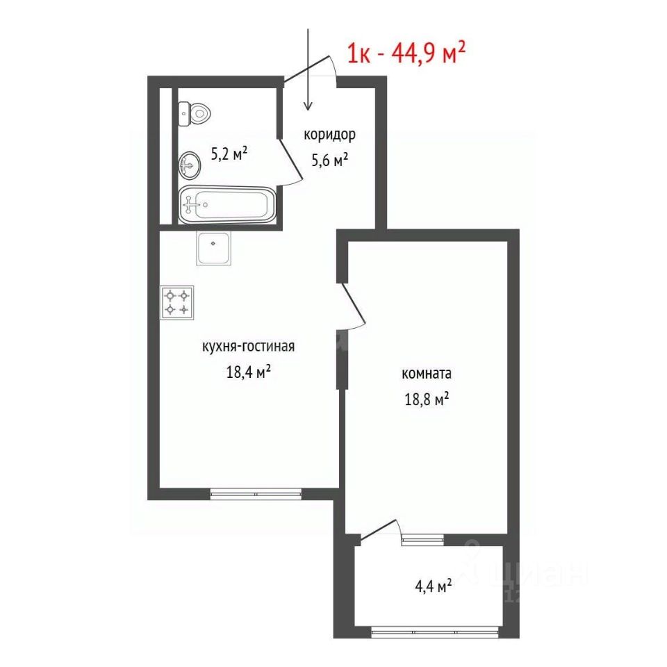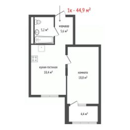 44,9 м²
