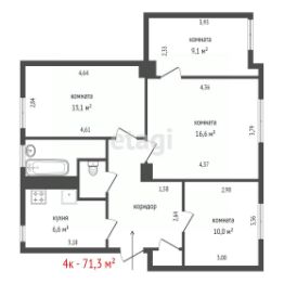 Квартира Уютная,светлая, с хорошей планировкой.Комнаты изолированы.С/У раздельный.